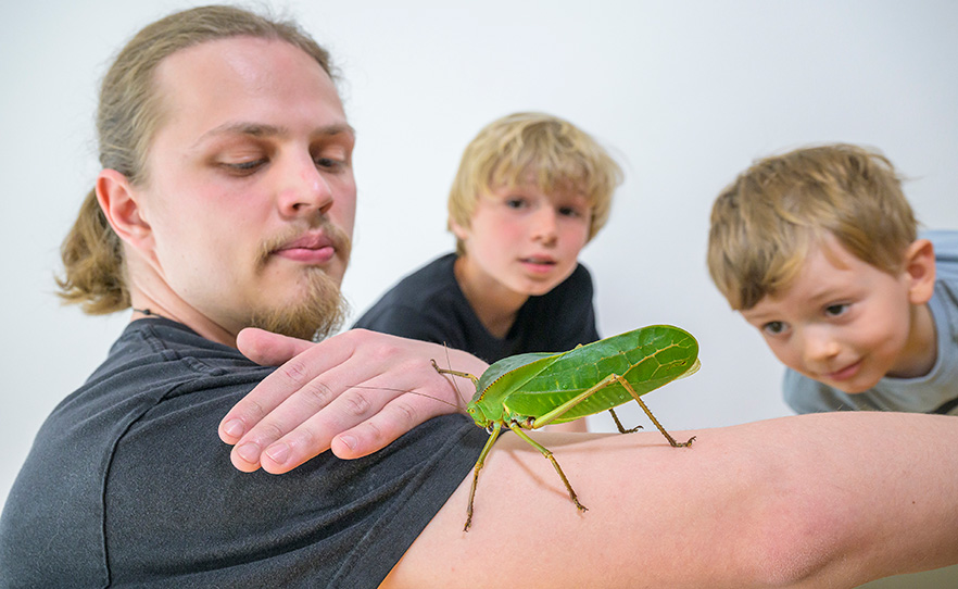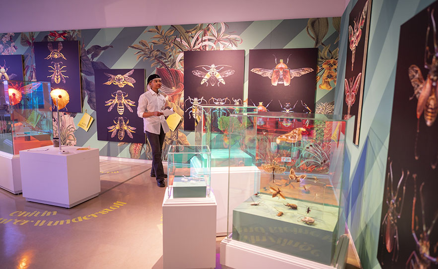 Noch ist unsere Erde ein Planet der Insekten. Sie halten den Kreislauf des Lebens in Schwung, bestäuben, ernähren und recyclen. Ohne sie geht nichts! Trotzdem haben Insekten nur wenige Fans. Vielen sind sie egal, andere finden sie eklig und die meisten einfach nur lästig. Sie werden massenhaft vernichtet. Aber schreitet das Insektensterben weiter voran, verliert auch die Menschheit wichtige Lebensgrundlagen. Also weg mit den Vorurteilen und ran an die Fakten! Insekten sind wahre Juwelen der Evolution mit erstaunlichen Superfähigkeiten. Großformatige Makrofotografien von Janosch Waldkircher, hunderte Präparate und viele Mitmachstationen laden zum Erforschen ein. Unter dem Mikroskop kommen faszinierende Details zum Vorschein, etwa die Facettenaugen einer Biene. Wie man damit sieht, kann man mit passenden Brillen ausprobieren. Für Familien gibt es eine Stempel-Rallye, Puzzlewürfel und andere spannende Lernspiele. Oder wie wäre es mit einem Selfie als Käfer, Libelle oder Gottesanbeterin?