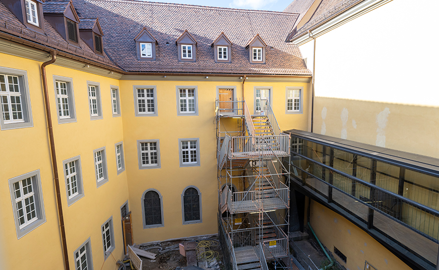 Die Arbeiten des 3. Bauabschnitts befinden sich in der Endphase. Ab Samstag, den 28. Februar 2026, hauchen die stadt- und kulturgeschichtlichen Sammlungen dem denkmalgeschützten Bau des ehemaligen Konventgebäudes neues Leben ein. Hinzu kommen ein Auditorium, die Welte-Lounge und das Museumscafé, das auch die attraktiven Außenflächen, wie den Kreuzganginnenhof und den Zinnengarten, einbezieht.