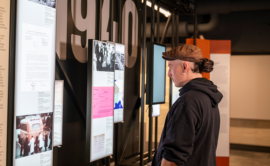 Die Übernahme des Projekts des Jüdischen Museums Hohenems und der KZ-Gedenkstätte Flossenbürg ist die erste Sonderausstellung des DZNS seit der Eröffnung des Hauses im März 2025. Für die Ausstellung in Freiburg wurden Ausschnitte aus Interviews mit überlebenden Freiburger*innen ergänzt. In der Museen Freiburg App gibt es außerdem eine begleitende Themen-Tour durch die Dauerausstellung des DZNS.