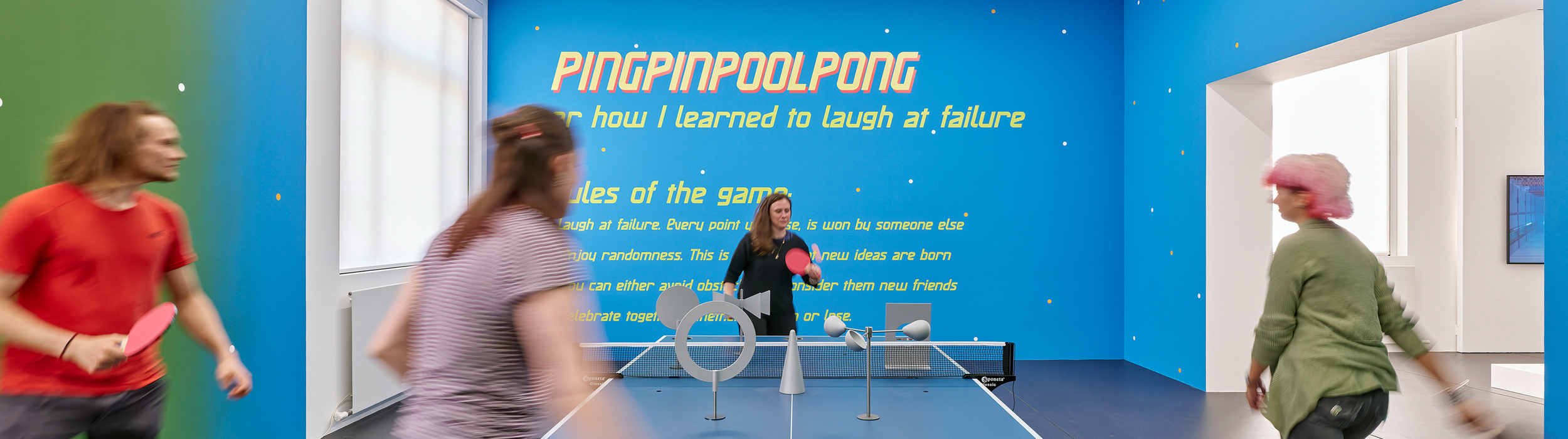 The museum turns into a playing field and visitors become actively involved or are spectators on the sidelines: the exhibition explores sport from an artistic perspective. What happens when you change the rules or rethink them entirely? When you alter the functions and forms of sports equipment? Or when you free sport from the pressure to compete and perform? International artists pose questions of the social, cultural and societal dimensions of sport. Many artworks invite active participation: for example, at a table tennis table with obstacles, on a slightly different chessboard, or with balls that aren’t round. As a mass phenomenon, sport brings people together and fosters a sense of community. It can also create a sense of identity. At the same time, barriers to and restrictions on participation are omnipresent – and which need to be overcome. The project was developed in collaboration with the associations beneFit and Ring Freiburg and under the patronage of Christian Streich.